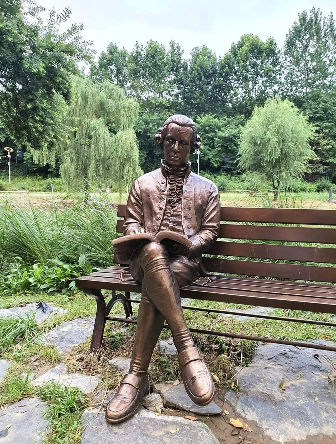 그런데 그 칸트가 다시 나타났습니다. 새 양복을 근사하게 맞춰 입고 더욱 우아하고 귀족스런 모습으로 말입니다. 대신 앉아있는 위치는 바뀌었습니다. 또 언제 그런 봉변을 당할까 싶어 좀 높은 언덕 위로 이사를한 것입니다. 아마도 수해 방지 차원도 있지만 그의 고향인 프로이센의 쾨니히스베르크가 왕의 언덕이란 뜻이어서 새로운 보금자리를 언덕 위로 정한 듯합니다. 칸트 옆 안내판에도 "칸트, 언덕을 오르다"라고 쓰여있는 것을 보면 말입니다.