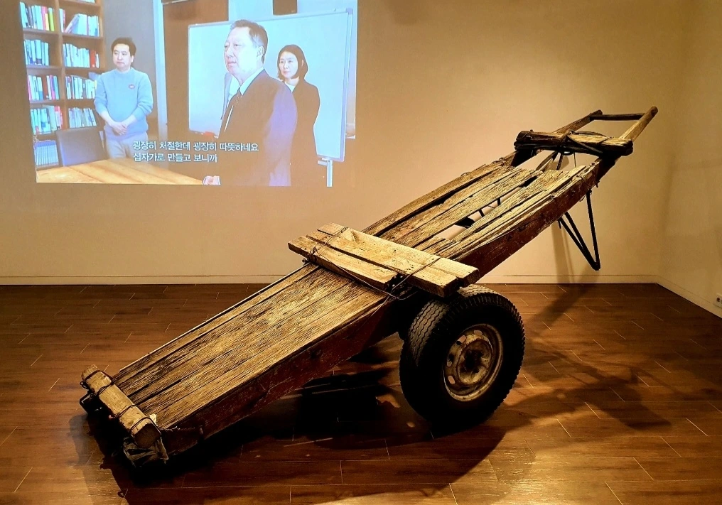 나무십자가로 다시 태어난 동대문 시장의 낡고 오래된 구르마 (2020. 4. 명동성당 전시)