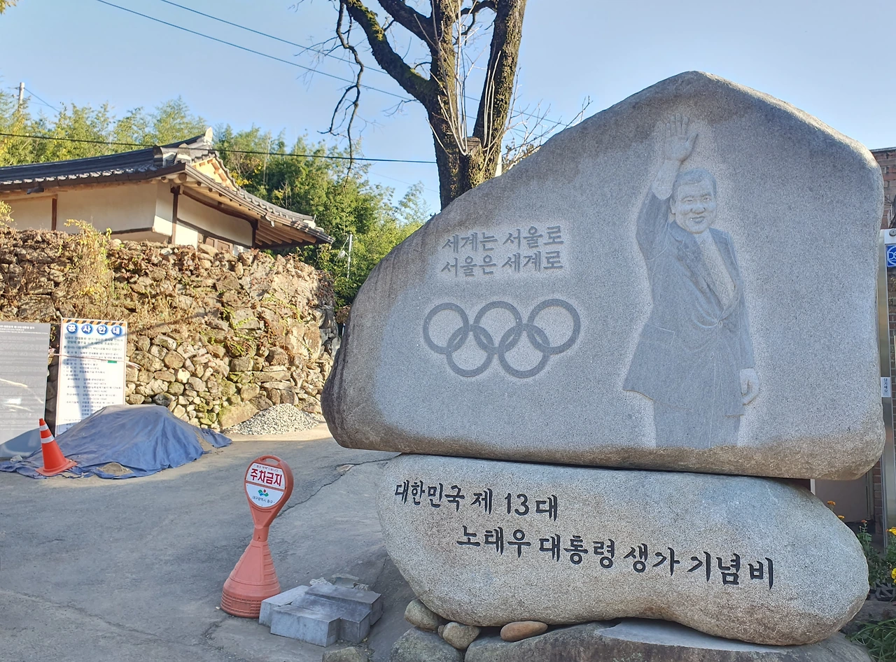 대구대학교에서 학생들에게 강의를 하고 초청한 교수와 팔공산 식당가에서 점심을 마치고 귀경길로 그 산을 넘어가는데 갑자기 대통령 생가 안내판이 쓱~하고 나타났습니다. 노태우 대통령이었습니다. 그래서 차 한 대 지나갈 정도의 좁은 꼬불길을 내려가 그의 생가를 방문하였습니다. 방문보다는 구경이란 표현이 적절할 것입니다. 대통령이 태어나고 자란 집이라 하니 어떻게 생겼을까라는 마음이 일어난 것이지요. 과거 광고회사 현직에 있을 때에도 구미공단에 있는 광고주를 방문하고 귀경길에 역시 쓱~하고 나타난 박정희 대통령 생가를 방문한 적이 있었는데 그때와 같은 흐름으로 방문한 것입니다.
