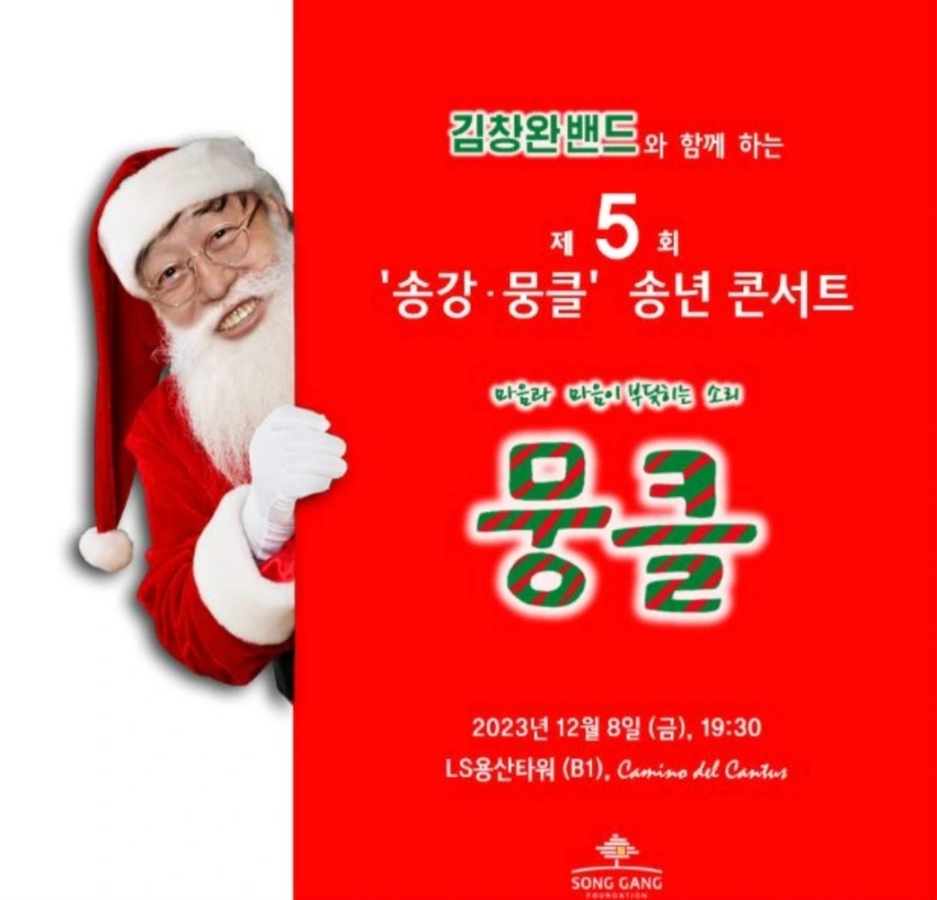 이제 그를 만나러 갈 시간입니다. 바로 전 H 선배를 만나 저녁을 먹은 것은 가까운 LS타워 지하에서 K 선배를 만나기 위함이었습니다. 음악을 하는 그 선배는 선배의 날이라 할 수 있는 그날 제가 만나는 선배들 중 최고참입니다. 그런데 (그 나이에) 활동은 가장 왕성하게 하고 있는 분입니다. 그는 아직도 은퇴하지 않은 현역이니까요. 그런데 그냥 은퇴하지 않은 것이 아니라 '하나도' 은퇴하지 않았습니다. 그는 본업 이외에도 여전히 많은 일을 하고 있어서 그렇습니다. 본업이라 할 수 있는 음악은 무려 46년 동안이나 하고 있습니다. 그 선배는 그날 저녁 그곳에서 열리는 공연에 출연합니다. 이름하여 '송강.뭉클' 송년 콘서트입니다. 공연 시작 전에 도착해 분주하게 준비 중인 K 선배를 먼발치에서 봤는데 우리 일행을 알아본 그는 반갑게 웃으며 봤다는 사인을 보내주었습니다. 공연 타이틀인 '뭉클'은 마음과 마음이 부딪히는 소리라고 합니다. 틀림없이 그 선배가 정한 타이틀일 것입니다.