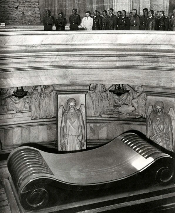 파리를 점령한 독일의 히틀러가 앵발리드에 잠들어 있는 나폴레옹을 참배하는 모습 (1940. 6. 28)
