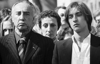 진 세버그의 장례식장에서의 로맹 가리와 그들의 아들 디에고, 1979