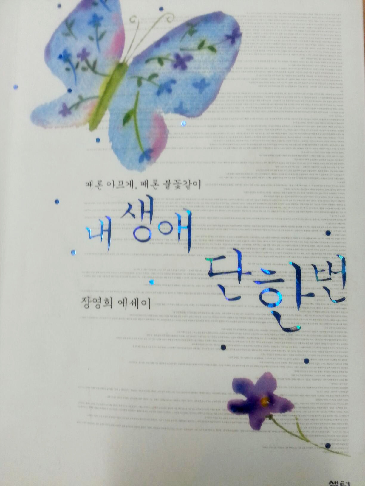 행사가 끝나고 저는 선생님께 달려가 조우하며 반가움을 나눴습니다. 서슴없이 "00아.."라고 반갑게 부르며 트레이드 마크인 함박웃음을 지어준 선생님의 모습이 글을 쓰는 지금 또 가슴에 박힙니다. 아, 다시 올리는 지금도.. 그때 선생님은 저에게 당시 출간한 지 얼마 안 된 '내 생애 단 한번' 에세이집을 선물해주셨습니다. 받으려고 하는 찰나 "가만있어 봐" 하시더니 가방 속에서 뭔가를 주섬주섬 꺼내시더니 다시 당신이 방금 사인하신 책 표지를 여셨습니다. 하트 꽃잎 스티커였습니다. 그걸 꾹꾹 누르며 현장에서 붙여주십니다. 소녀같으신 분..