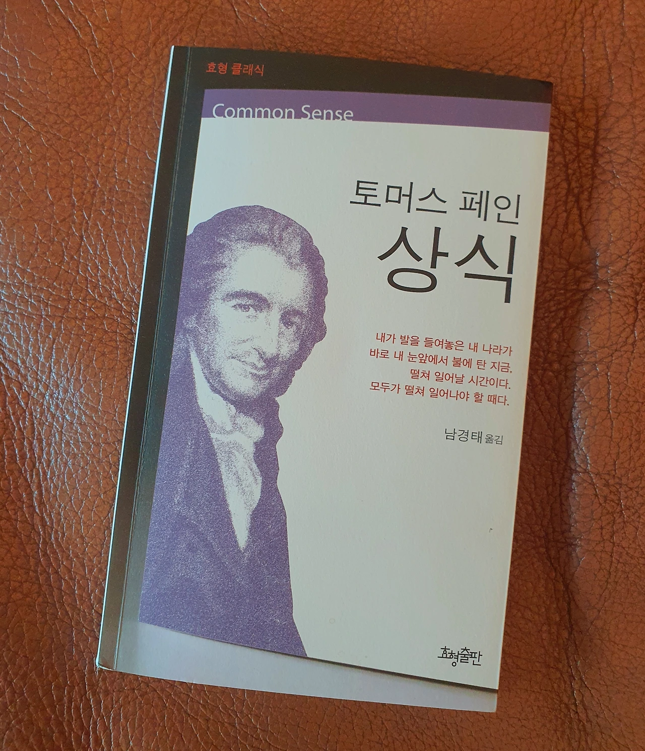 상식은 제가 위에서 열거한 어린 시절의 기억이나, 과거 스코틀랜드의 철학자들에 의해서, 그리고 현재 영국의 현실 정치에 등장하고 있지만 역사상 상식이 가장 빛을 발한 것은 미국의 독립 시기에 등장한 상식일 것입니다. 어떻게 보면 미국의 독립을 이루어 낸 것이 상식이라고 할 정도로 상식은 당시 엄청난 영향력을 발휘했습니다. 바로 토머스 페인이 쓴 <상식(Common Sense)>이라는 저서입니다. 1776년 출간된 그 책은 3개월 만에 10만 부가 팔렸을 정도로 많은 사람들이 읽었는데 당시 글을 아는 독립 이전 미국인들은 거의 다 읽었을 정도로 <상식>은 선풍적인 인기를 끈 베스트셀러였습니다. 책이라 하기엔 50페이지 정도로 얇아서 팸플릿이라 불리는 소책자입니다.