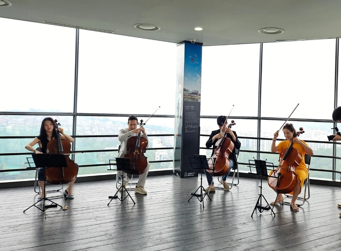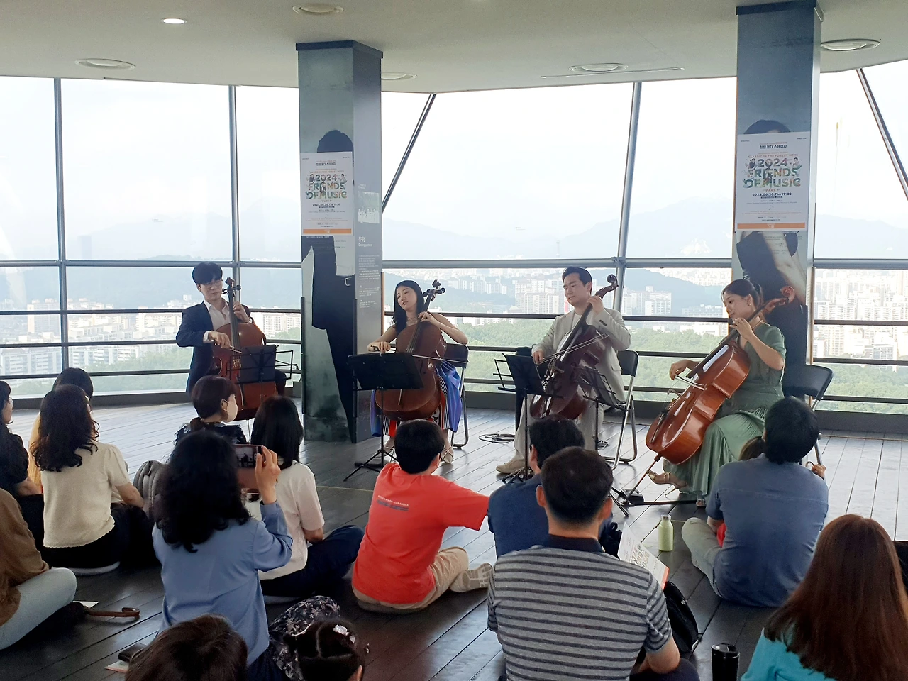무대와 객석이 따로 없었던 전망대의 4첼로 공연 모습