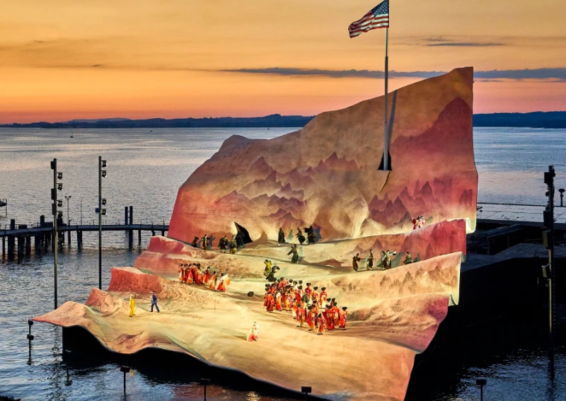 브레겐츠 오페라 축제의 무대와 공연 모습. 2022-23 풋치니의 <나비부인> (출처, 홈페이지)