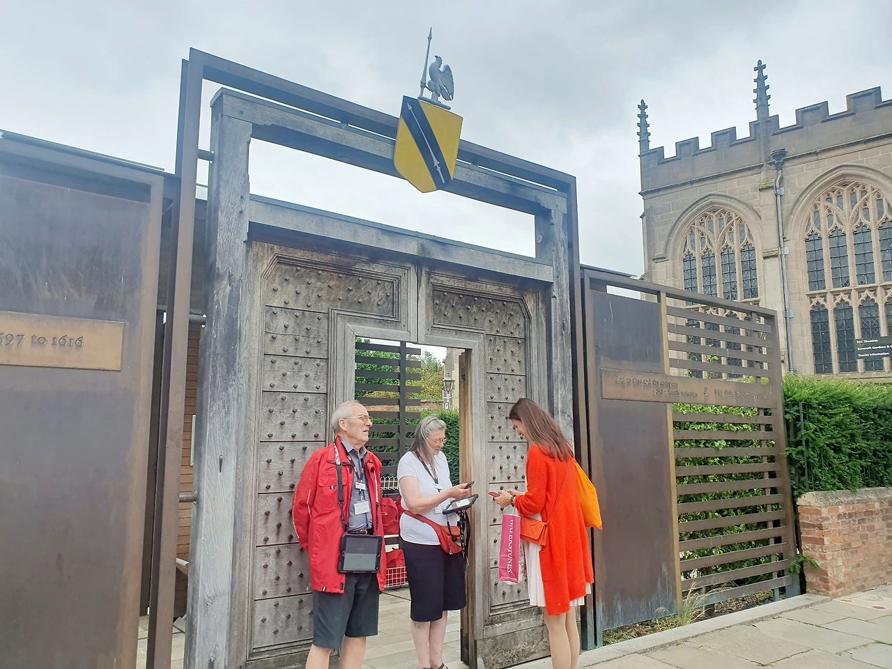 셰익스피어가 말년을 보낸 뉴 플레이스 저택. 지금은 터만 남은 채로 관광객을 맞고 있음. 위의 노란 방패는 그의 문장