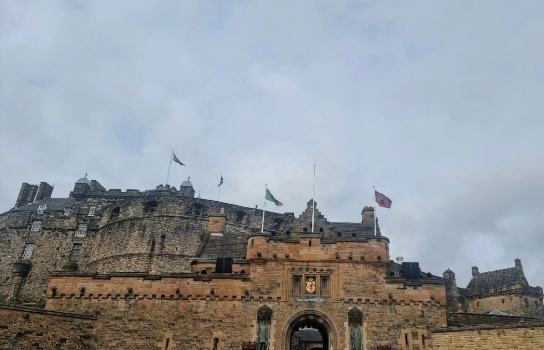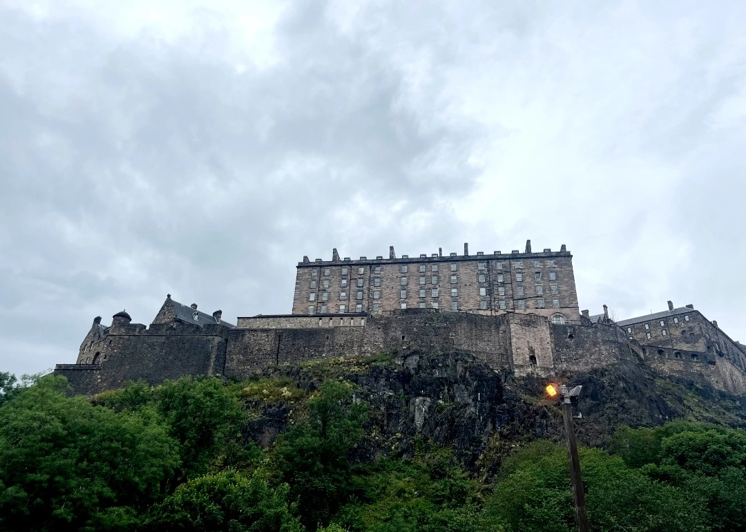 드디어 언덕 위 에든버러성에 도착했습니다. 성문 앞마당엔 보름 남은 축제의 임시 스테이지와 스탠드가 설치되어 있었습니다. 에든버러성은 과거 스코틀랜드의 왕들이 머문 궁전 역할도 했음에도 아름답고 화려한 성보다는 전투적인 요새에 더 가까워 보입니다. 런던의 주중 왕가의 집무실이자 거주지인 버킹컴 궁전이나 주말 거주지인 윈저성과 비교하면 규모도 작고 분위기도 사뭇 다릅니다. 무릇 유럽의 성이나 궁전이라면 동화도 연상되곤 하는데 에든버러성은 그렇지 않습니다. 성조차도 스코티시 아이덴티로 무장하고 있는 듯합니다. 아마도 더 북쪽의 에버딘에 있는 왕가의 여름 궁전인 밸모럴성은 같은 스코틀랜드라도 좀 다를 것입니다. 근대 들어 평화기인 1856년에 왕족의 구미에 맞게 지어졌으니까요. 밸모럴성은 2022년 엘리자베스 2세가 머물다 서거해 더 유명해졌습니다. 에든버러성은 중세 말인 12세기 초부터 축성되었습니다.