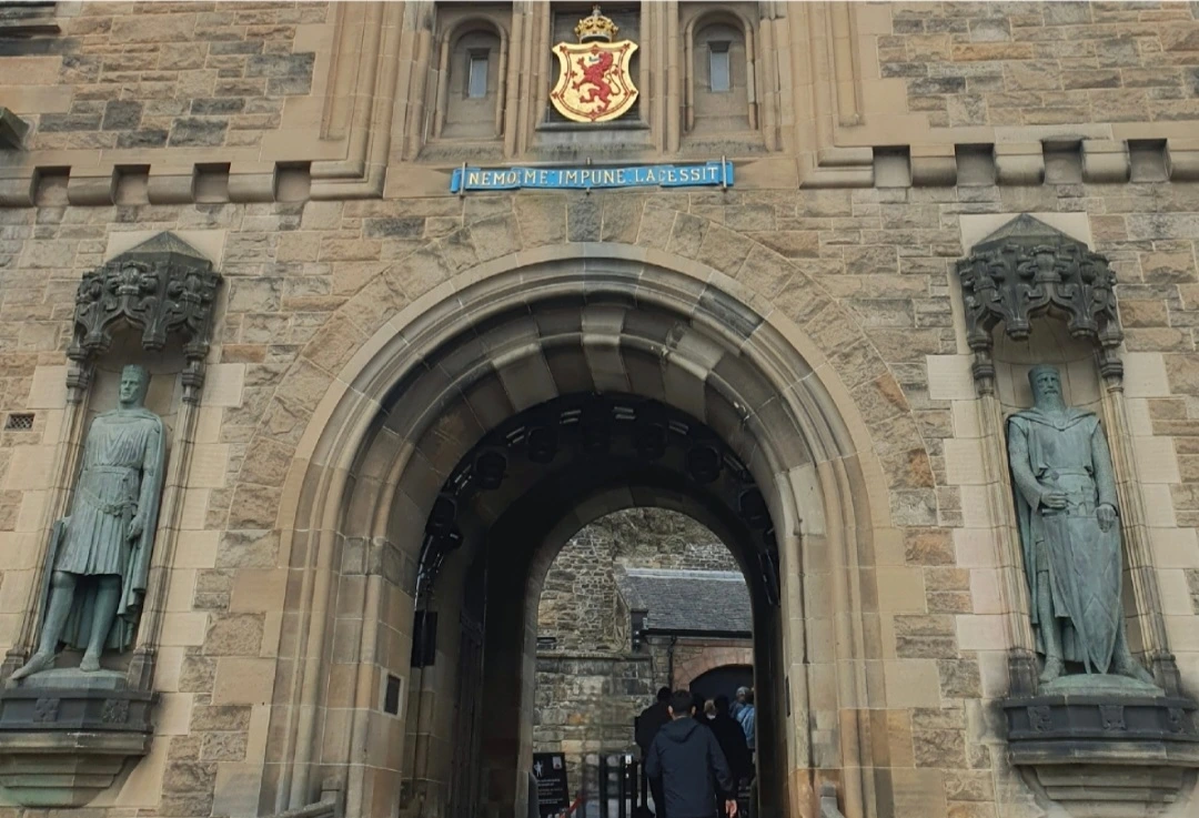 에든버러성의 메인 게이트 성문엔 두 명의 동상이 서있습니다. 앞에서 언급한 스코틀랜드의 위기 시 자유와 독립을 위해 잉글랜드와 싸운 최고의 영웅들입니다. 한 명은 민병대장이고 한 명은 왕입니다. 성문 좌우에 그들은 마치 보초를 서듯이 늠름하고도 비장하게 서있습니다. 과거 적이 침공 시 성 밖 주민들은 모두 에든버러 꼭대기에 있는 이 성 안으로 들어왔을 것입니다. 그런즉 이들은 지금도 스코틀랜드 최후의 보루인 에든버러성을 지키고 있는 것입니다. 수문장 중 오른쪽은 스코틀랜드 독립의 씨앗을 뿌린 윌리엄 월레스이고, 왼쪽은 그를 이어 독립의 열매를 거둔 로버트 더 브루스(로버트 1세)입니다. 격동의 시대 14세기 전후에 살다 간 인물들입니다.
