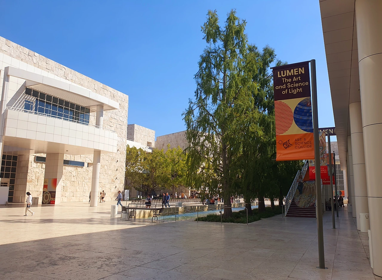 흡사 서울의 남산 케이블카를 타는 것만 같았습니다. 또는 유럽 고지대 관광지의 푸니쿨라를 타는 것 같기도 했습니다. 저 위 정상을 향해 유려하게 잘 빠진 트램을 타고 굽이굽이 올라가니까요. 그곳이 초행인 저는 도착 즈음 멀리 산 위로 보인 그곳이 테마파크인 줄만 알았습니다. 트램이 마치 동화 속 성처럼 보이는 산 위 하얀 건축물을 향해 올라가고 있었으니까요. 도착해 보니 그곳이 게티 미술관이었습니다. 미술관이 산 정상 높은 곳에 위치해 있기에 방문객들은 목적지에 도착해서 그렇게 트램을 타고 올라가야 합니다. 그냥 밑에다 미술관을 짓고 방문객을 맞이해도 될 텐데 그 미술관의 건립자인 폴 게티는 그렇게 하지 않았습니다. 그렇게 할 것이었다면 그는 아마도 접근성이 좋은 LA(로스앤젤레스) 다운타운에 미술관을 세웠을 것입니다.