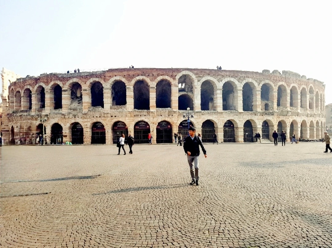 2017년 회사 일로 밀라노 출장을 갔었습니다. 일을 다 마치고 귀국하기까지 스페어 데이로 잡아둔 하루가 비었습니다. 오, 베로나를 갈 기회가 온 것입니다. 그래서 고민 없이 로미오와 줄리엣이 사는 영문학의 고도 베로나로 향했습니다. 예상대로 중세의 낭만이 서린 베로나에서 그 커플을 만난 저는 그 도시에서 과외로 전혀 예상하지 못한 고대의 건축물을 보고 매료당했습니다. 로마의 콜로세움과도 같은 거대한 원형 경기장이 도시 한가운데에 있던 것이었습니다.