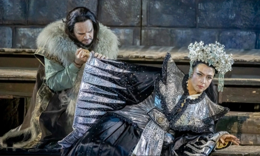 투란도트 공주(옥사나 디카)와 칼라파 왕자(마틴 뮐레)의 팽팽한 기 싸움 (솔오페라)