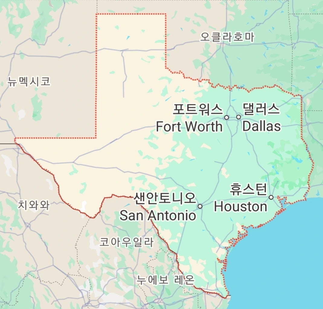 미국의 중남부에 위치한 텍사스주의 지도 (출처, 구글맵)