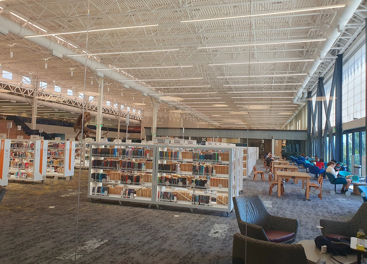 시민, 주민, 외부인에게 무료로 개방하는 댈러스의 팬시한 프리스코 공공 도서관