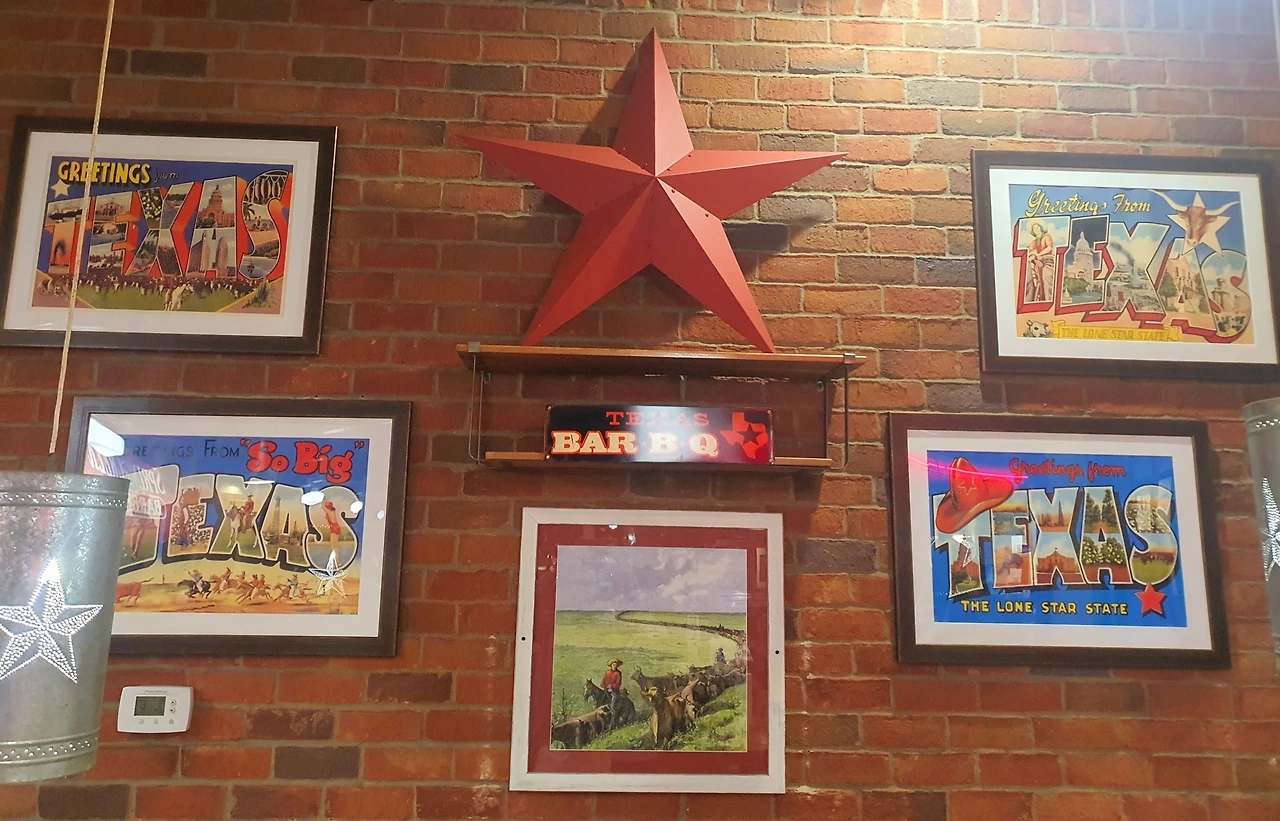 서부 시대를 연상케 하는 텍사스의 빈티지풍 식당의 내벽