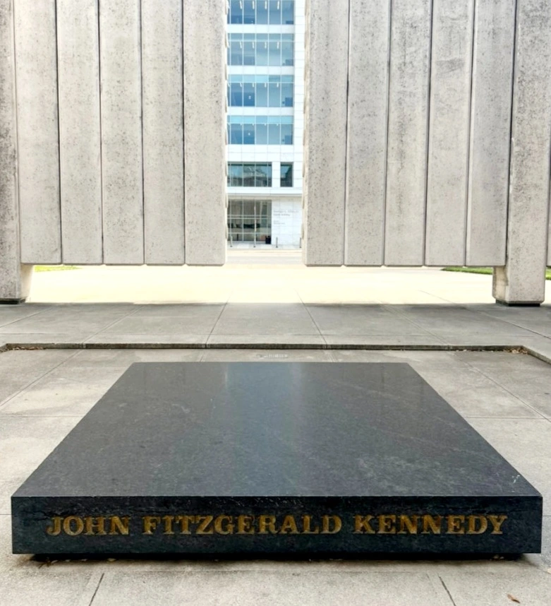 암살된 장소 근처에 조성된 케네디 메모리얼 플라자 내 케네디 대통령 추모석