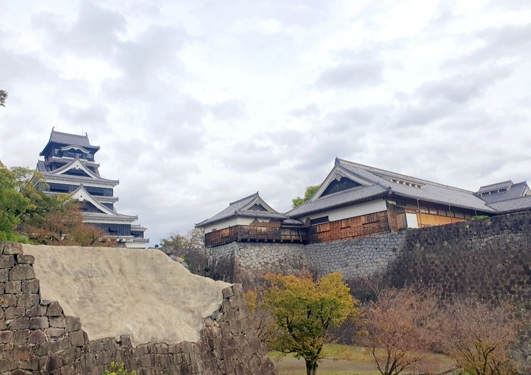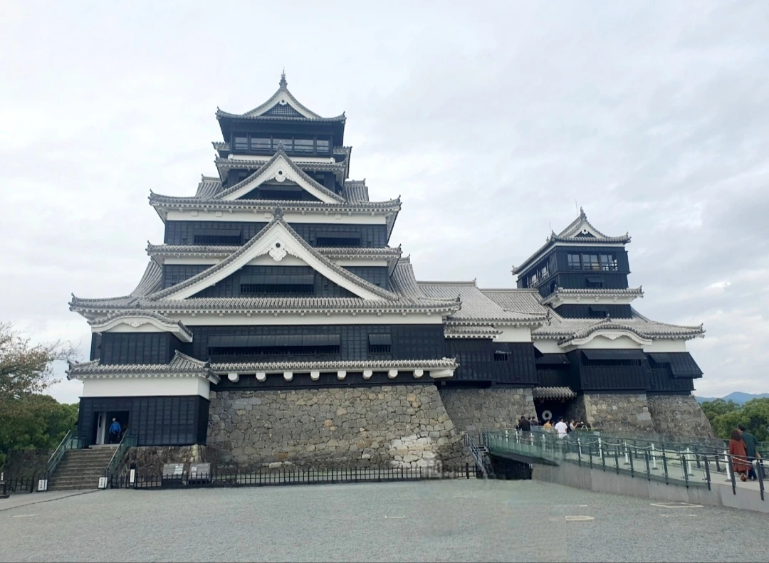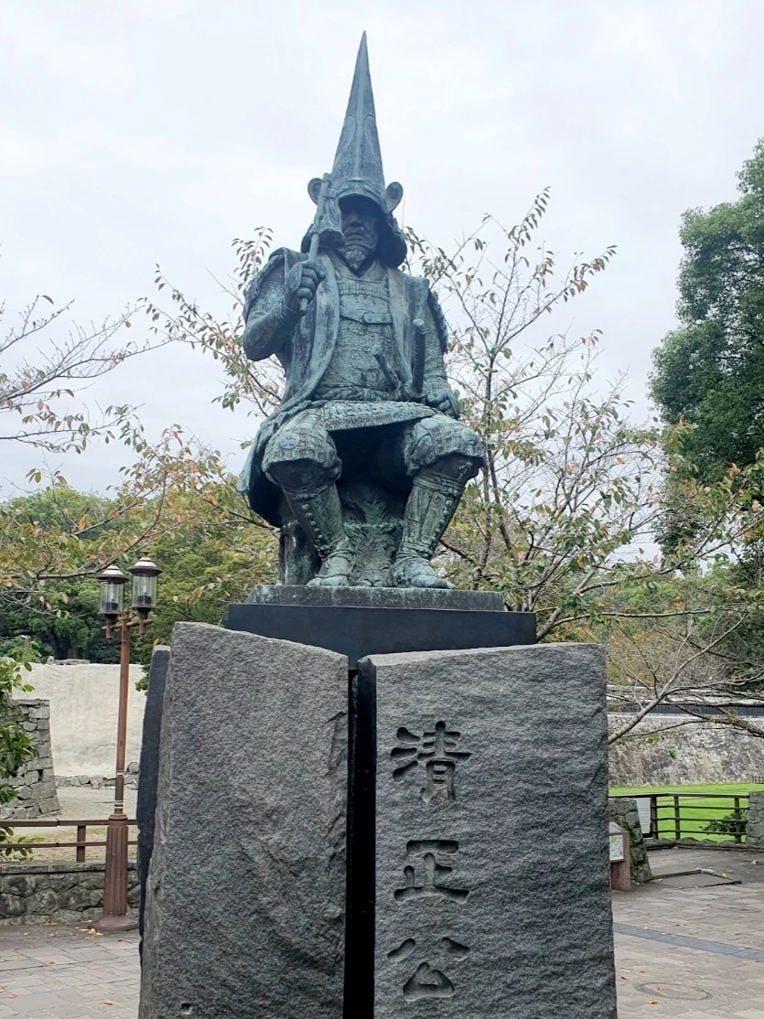 구마모토성은 2016년 지진으로 무너져 현재 공사 중에 있습니다. 완전한 복구는 2052년에 이루어진다고 합니다. 하지만 2024년 11월 방문한 구마모토성은 관람에 크게 문제가 없어 보였습니다. 성의 핵심인 천수각은 멀쩡해 꼭대기까지 오를 수 있었고 지진으로 무너진 지역을 통과할 때엔 임시 공중 보행로를 높게 세워놔서 관람을 하는 데엔 오히려 더 편하기까지 했습니다. 다다미 속 토란 줄기는 확인 못했고 조롱박보다는 사쿠라가 무성한 성이었지만 유명해진 성내 우물은 확인할 수 있었습니다. 성 입구엔 그 성을 축조한 가토 기요마사의 동상이 그 성의 호위무사처럼 우뚝 서있었습니다. 아니 앉아있었습니다. 구마모토 시민들은 가토 가문이 그 시와 맺은 인연은 짧지만 호소카와 가문과 함께 두 가문을 모두 자랑스럽게 생각하는 듯했습니다. 그날도 성 곳곳엔 두 가문의 문장(가몬)이 함께 걸려있는 모습이 내내 목격되었습니다.