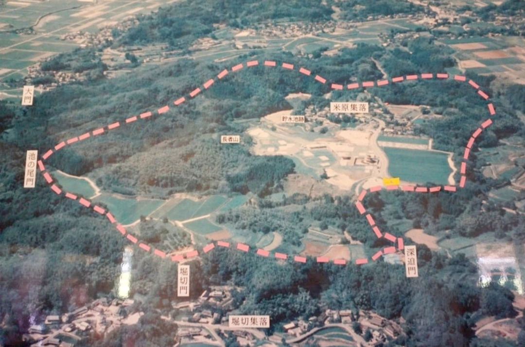 구마모토현 야마가시에 백제인이 세운 산성인 기쿠치성. 점선은 성의 영역.