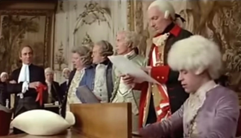 모차르트가 입궁하여 황제와 궁정 음악가들 앞에서 연주하는 모습 (출처, '아마데우스', 1985)