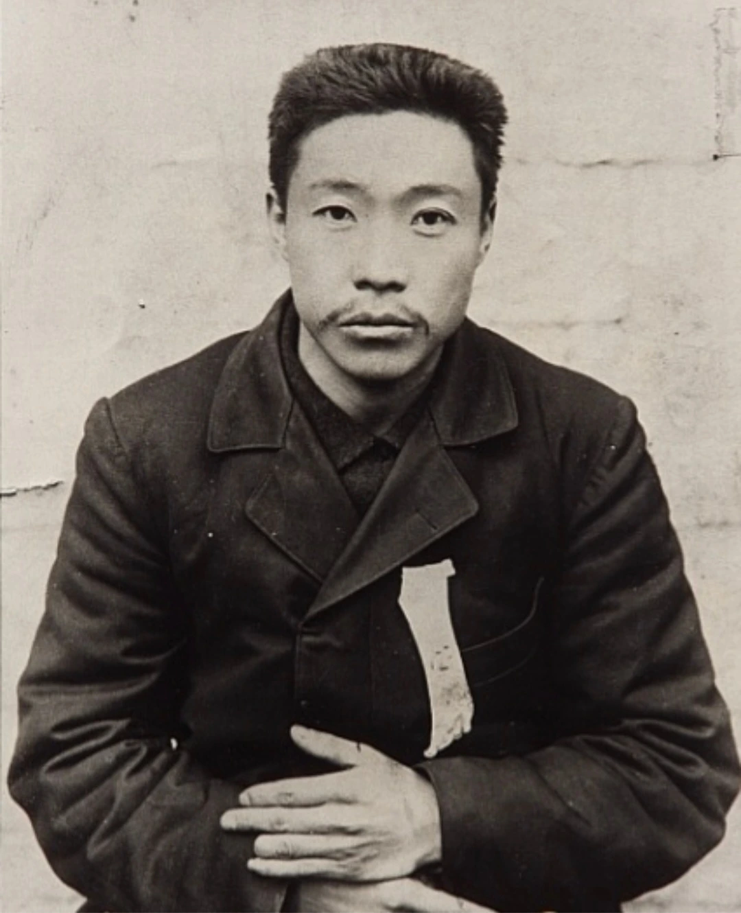 법정에 선 안중근 의사(1879~1910). 왼손 약지를 단지한 흔적이 뚜렷이 남아있음.