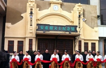 2014년 하얼빈역에 개관한 '안중근의사기념관'. 중앙 시계는 거사 시간인 오전 9시 30분에 영원히 멈추어 있음.