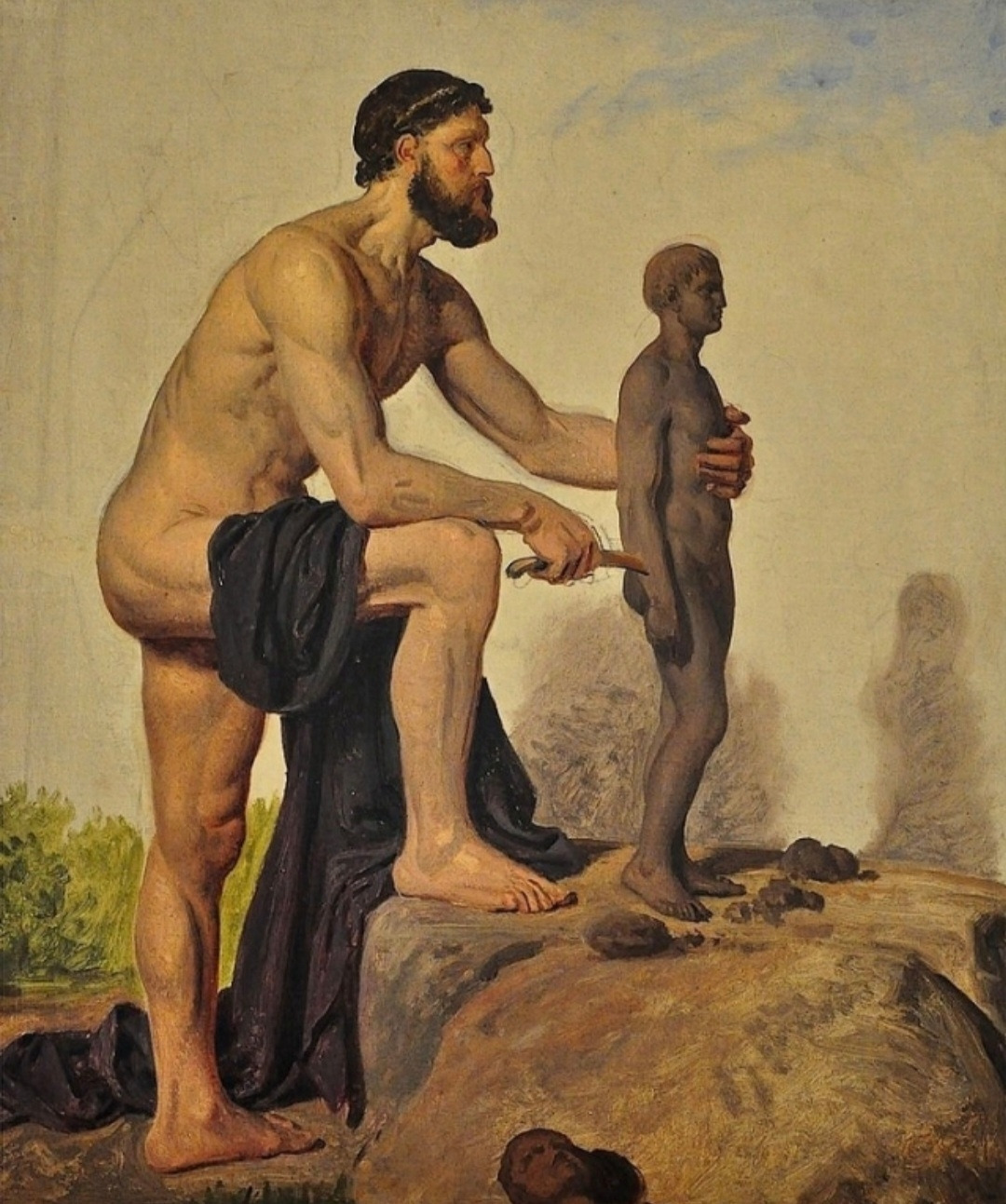 그리스신화에서 여자는 상자로 유명한 판도라가 첫 여자로 등장합니다. 그녀는 제우스의 명에 의해 대장장이 신인 헤파이토스가 여신의 모습을 본떠 만들었습니다. 인간계에 불행을 주기 위해 창조되었습니다. 또 한 여자, 키프로스섬의 조각가인 피그말리온도 여자인 갈라테이아를 만들었습니다. 그가 빚은 조각이 너무 아름다워 사랑에 빠졌는데 조각이 살아난 것입니다. 미의 여신인 아프로디테가 기술을 발휘했습니다. 아프로디테는 위의 크로노스가 우라노스를 거세하고 던진 낫에서 태어났습니다. 그 낫이 키프로스 앞바다에 빠졌는데 양물이 묻어있어서인가 그곳에서 거품이 일며 그녀가 태어났습니다. 보티첼리가 그린 <비너스의 탄생>처럼 말입니다. 비너스는 아프로디테의 로마 신화 속 이름입니다. 그런즉 아프로디테는 같은 고향 사람인 피그말리온의 사랑을 안타까워해 조각을 살아나게 해준 것입니다. 또 그런즉 여신 중에서 가장 아름다운 아프로디테는 남신 중에서 가장 못생긴 헤파이스토스의 아내이니 그 부부는 인류에 있어서 여자의 부모라 하겠습니다.