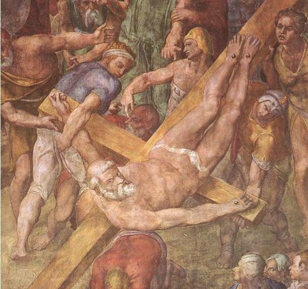 사도 바울의 이름을 따서 1540년에 세워진 파올리나 성당에도 미켈란젤로의 유명 작품이 두 점 걸려 있습니다. 스승인 예수와 똑같이 죽을 수 없다며 거꾸로 십자가에 매달려 죽은 <성 베드로의 순교>와 기독교도들을 탄압하던 바울이 예수를 만나 개종하는 장면을 그린 <바울의 회심>이란 그림입니다. 이 두 작품은 그의 마지막 작품으로 알려져 있습니다. <베드로의 순교> 그림에서 보이는 베드로는 죽어가면서도 눈빛만은 형형하게 그림 밖을 노려보고 있습니다. 초대 교황인 그가 흡사 후대 교황들에게 똑바로 일하라고 안광을 발사하는 것만 같습니다. 미켈란젤로는 브라만테, 라파엘로에 이어 성 베드로 대성당의 건축 감독을 역임했습니다. 그 성당은 1506년에 착공해 미켈란젤로(1475~1564) 사망 56년 후인 1620년에 완공이 되었습니다. 이렇듯 미켈란젤로가 많이 보이는 바티칸이고 콘클라베입니다.