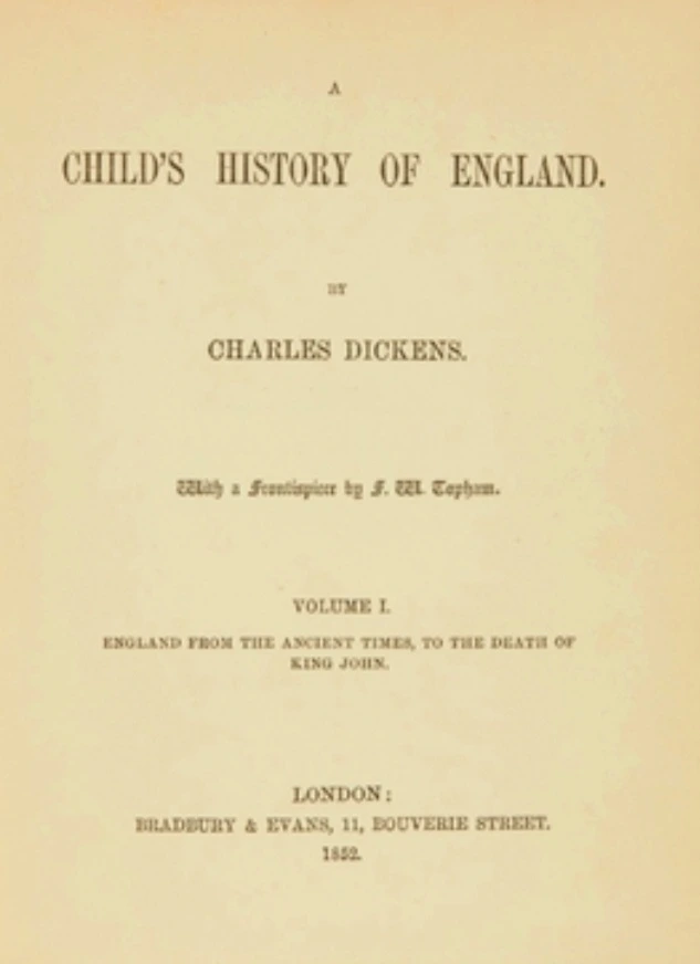 찰스 디킨스는 그의 자녀를 위한 <우리 주님의 생애(영화 킹 오브 킹스)>(1846~1849)를 쓴 후 역시 또 아이들을 위해 영국의 역사에도 관심을 갖게 됩니다. 역사서는 많았지만 아이들을 위한 역사책이 없어서였습니다. 마치 "역사를 잊은 민족에게 미래는 없다"는 말을 했다고 알려진 우리의 신채호 선생과도 같은 심경을 품었었나 봅니다. 그래서 그는 아이들을 위한 전문 영국사 책인 <A Child's History of England>(1851~1853)를 집필했습니다. 그가 창간한 주간지인 <Household Words>에 3년간 연재한 작품을 세 권의 책으로 낸 것입니다. 그리고 그의 염원대로 이 책은 20세기 말까지 영국의 초등학교 국사 교과서로 채택이 되었었습니다. 그만큼 알기 쉽게 쓴 것입니다.