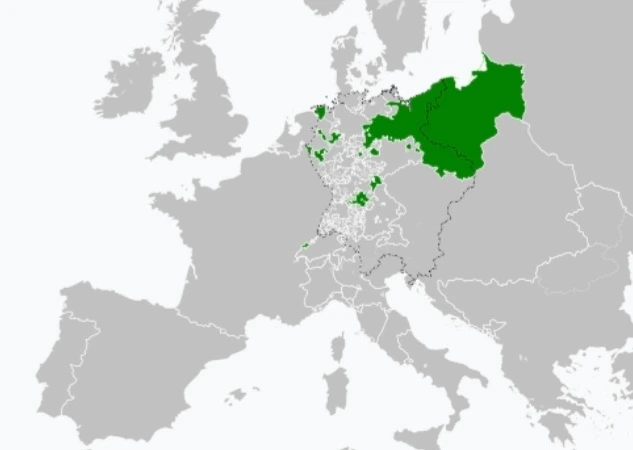 신성로마제국 내에서 독일의 위상이 견고해지며 독자적인 통일 운동이 시작됩니다. 크고 작은 1,500개의 제후국과 도시를 통합하는 운동이 시작된 것입니다. 통일의 초석은 베를린을 수도로 한 호엔촐레른 가문의 브란덴부르크 백국이 놓았습니다. 오늘날 폴란드에 걸쳐있던 프로이센 공국과 1618년 동군연합으로 대통합의 물꼬를 튼 것입니다. 동군연합은 한 왕이 두 국가를 다스리는 것을 가리킵니다. 브란덴부르크의 왕이 프로이센 공국을 함께 다스렸습니다. 그렇게 동군연합을 지속하며 호흡을 맞춘 두 국가는 1701년 프로이센 왕국이란 한 국가로 통일이 되었습니다. 북부 독일에 한정되었지만 역사적인 첫 통일을 이룬 것입니다. 이런 방식의 통일은 엘리자베스 1세 여왕 사후 후사가 없던 잉글랜드가 1603년 스코틀랜드와 동군연합을 거쳐 1707년 그레이트브리튼(GB) 왕국 한 나라로 통합된 것과 같은 방식이라 하겠습니다. 프로이센 공국은 십자군전쟁 시 튜턴기사단이라 불린 독일기사단의 후예들이 세운 나라였습니다.