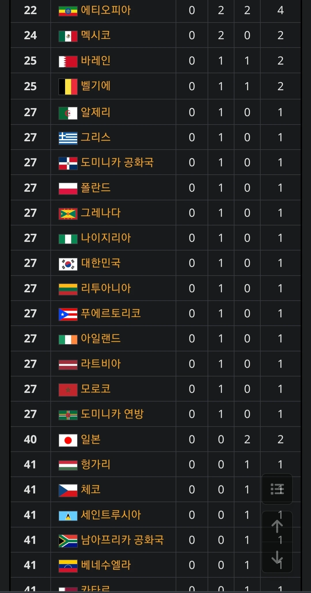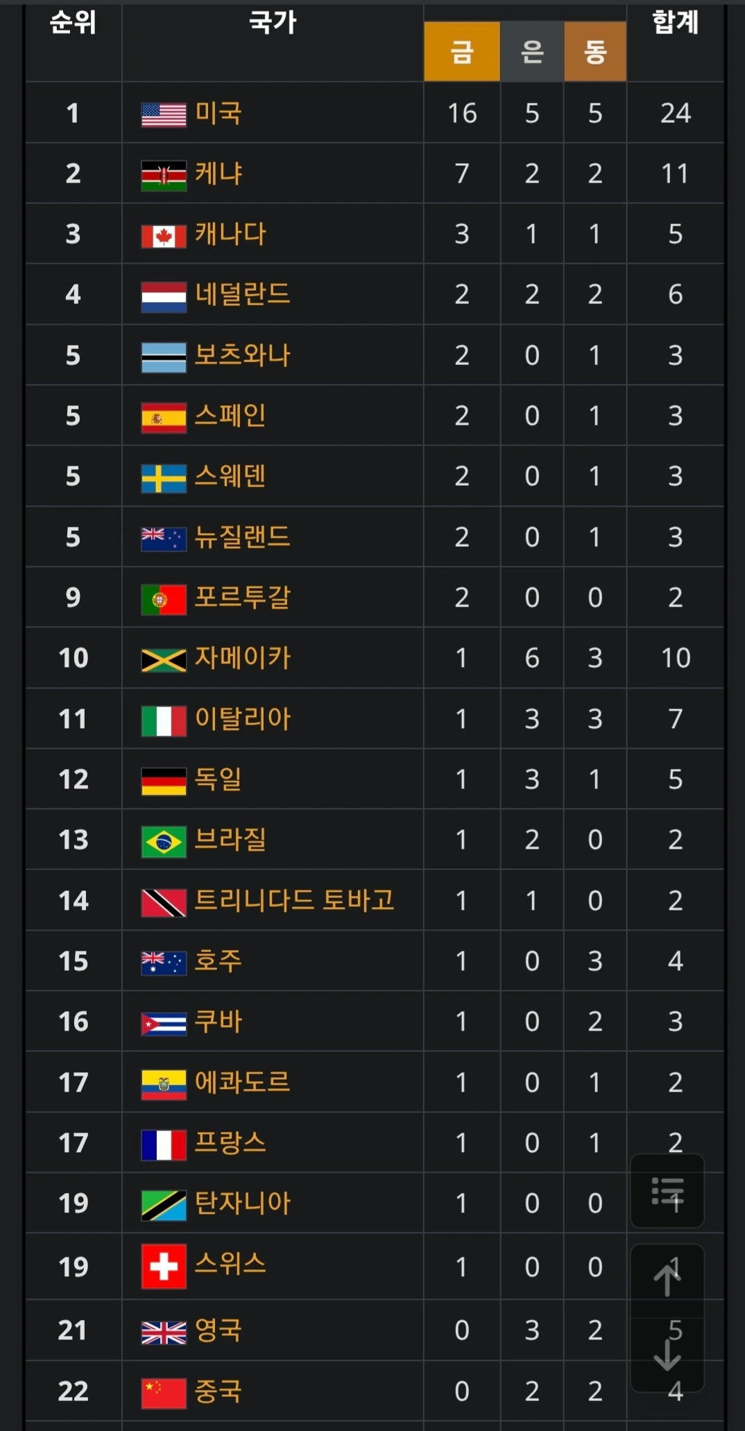 육상에서의 희소함과 열세는 일본도 중국도 예외가 아닙니다. 특히 올림픽이든 아시안게임에서 메달을 휩쓸어가는 중국이지만 이번 대회에서 중국은 은메달 2개, 동메달 2개로 22위에 그쳤습니다. 금메달을 단 한 개도 따지 못한 것입니다. 개최국인 일본은 더 심합니다. 동메달 2개로 40위에 그쳤으니까요. 우리나라는 우상혁 선수 덕에 27위를 마크했습니다. 메달 색깔 순위로 본 결과입니다. 이것으로만 보면 육상은 동양인, 황인종에 절대적으로 불리한 게임으로 보입니다. 육상이 원하는 피지컬 측면에서 백인, 흑인에게 밀린다는 것입니다. 이 정도로 희소하다면 그것은 노력이나 투자 부족만으로는 보기 어려울 것입니다.