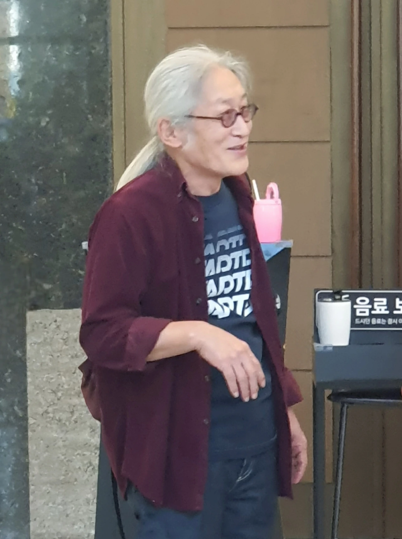 거기엔 블루스 40년 무공으로 도가 터 이젠 도인처럼 보이기도 하는 유일한 원년 멤버 엄인호 리더의 공이 절대적으로 클 것입니다. 밴드명에 들어간 신촌은 그가 당시 살던 곳이라 붙여진 이름이라고 합니다. 아래 첫 사진은 어제 공연 시작 전 로비에서 저의 파파라치 샷에 딱 걸린 그분의 해맑은 모습입니다. 1952년 생이니 나이로는 밴드보다 30년 위인 고희를 훌쩍 넘겼습니다.