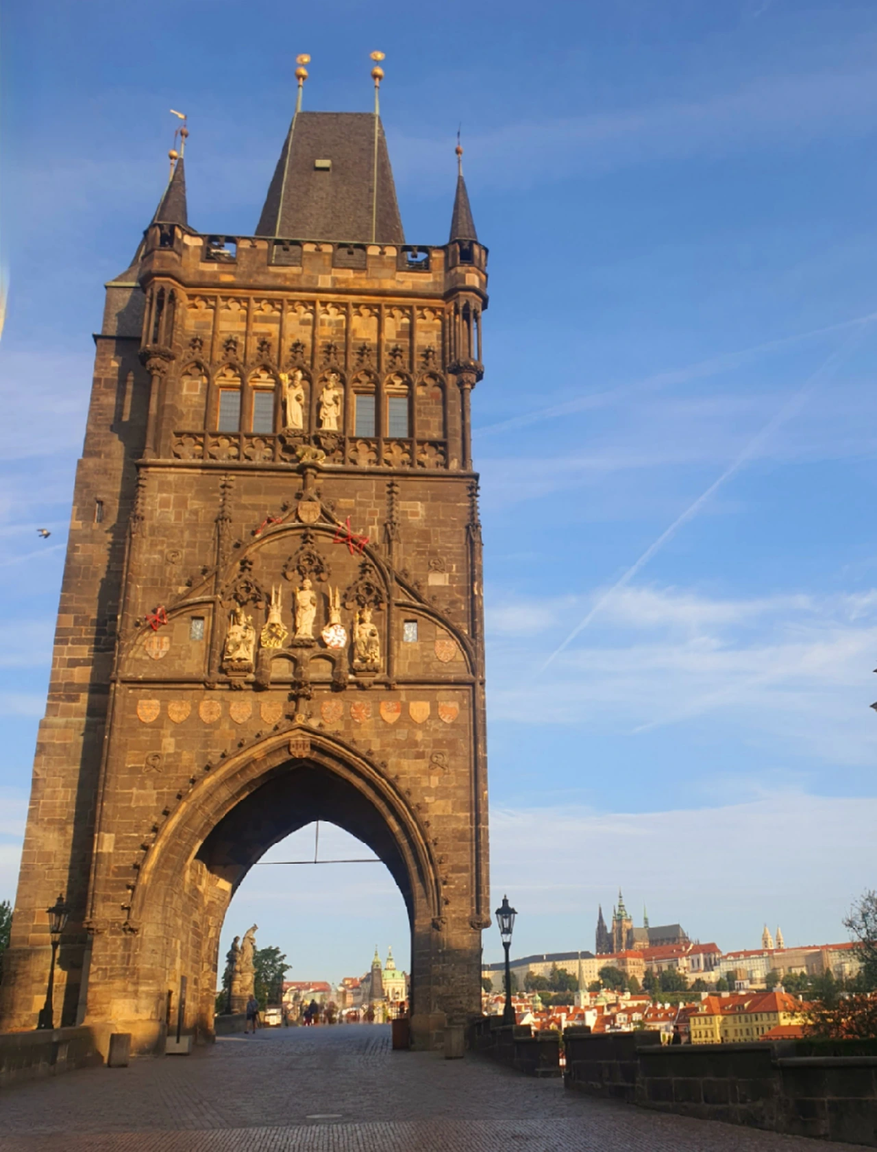 재미있는 사실은 카를교는 1357년 7월 9일 오전 5시 31분에 정확히 건설을 시작했습니다. 앞뒤로 읽어서 똑같은 숫자가 나오는 시간에 다리의 첫 돌을 얹은 것입니다. 영어로 읽으면 정확히 앞뒤가 같습니다. 점성술적으로 성공적인 건설을 기원해 그렇게 했다고 합니다. 1402년에 준공이 됐으니 카를교는 600년이 넘은 돌다리입니다. 차는 건널 수 없는 보행교입니다. 프라하를 방문한 사람치고 그 다리를 건너지 않는 여행자는 없을 것입니다. 지난 8월 제가 프라하에 머물 때엔 500m가 조금 넘는 그 다리를 인적이 드문 새벽에 건너고 돌아왔습니다. 제가 머문 곳은 프라하성 쪽이 아닌 시계탑 광장이 있는 강 동쪽이었습니다.