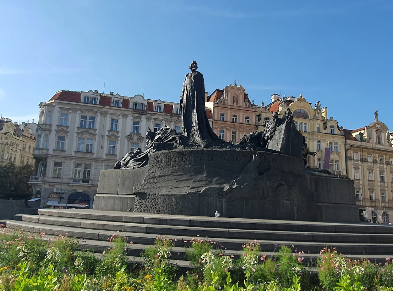 14세기 카를 4세가 이룩한 번영의 시대가 끝나고 15세기가 시작되며 논쟁과 그 논쟁으로 야기된 전쟁이 프라하를 휩쓸게 됩니다. 종교논쟁이 일어났고 그 논쟁을 관철시키려는 자와 막기 위한 자들 간에 종교전쟁이 일어난 것입니다. 그 논쟁과 전쟁 사이에 한 종교개혁가가 있었으니 그가 바로 얀 후스(1370~1415)입니다. 그는 위의 카를 4세가 세운 카를대학의 총장이었습니다. 카톨릭의 면죄부 판매를 비판했고 라틴어가 아닌 체코어로 일반 신도들도 이해하기 쉽게 미사를 드리게 했습니다. 결국 그는 교황청의 미움을 사 콘스탄츠 공의회에 소환되어 1415년 화형을 당했습니다. 마녀와도 같이 이단자로 몰린 겁니다. 그러자 그의 순교를 지켜본 추종자인 후스파와 그를 억압하던 세력 사이에서 전쟁이 일어났습니다. 후스전쟁(1419~1434)으로 불리는 종교전쟁으로 교황청은 이들을 제지하기 위해 십자군을 보낼 정도였습니다. 결국 온건파의 승리로 전쟁은 막을 내렸습니다. 아직 때가 무르익지 않은 것입니다.