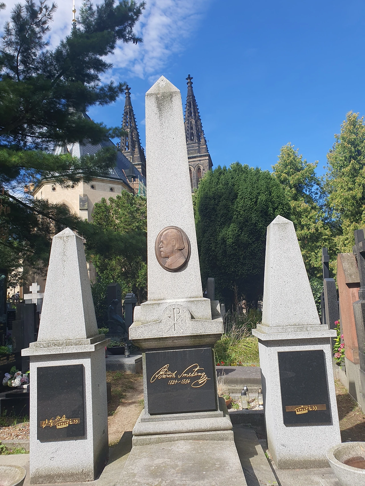 사제관계이자 선후배인 스메타나와 드보르자크는 죽어서 한 곳에 묻혔습니다. 체코 국민음악파의 쌍벽답게 매우 영예로운 곳에 묻혀있습니다. 체코 건국신화의 땅인 비셰흐라트의 국립묘지가 그들이 영면하고 있는 장소입니다. 그 묘지는 체코의 국가 영웅 600여명이 잠들어 있는 곳으로 우리의 현충원 같은 곳입니다. 둘 간의 묘지는 100m도 안 될 정도로 가깝습니다. 블타바강이 내려다 보이고 그 강 따라 저 멀리 프라하의 구도심이 보이는 비셰흐라트 언덕이 체코의 성지인 것은 그곳에서 체코의 역사가 시작되었기 때문입니다. 우리 단군왕검이 세운 신시와도 같은 곳인 것입니다. 건국의 신들이 그곳에 살았고 여신인 리부셰 공주는 블타바강 유역에 위대한 도시가 세워질 것을 예언했습니다. 그렇게 예언이 실현된 도시가 프라하입니다. 스메타나는 그의 <나의 조국>에서 블타바강과 함께 비셰흐라트와 그곳에 살던 신들도 찬미하였습니다.
