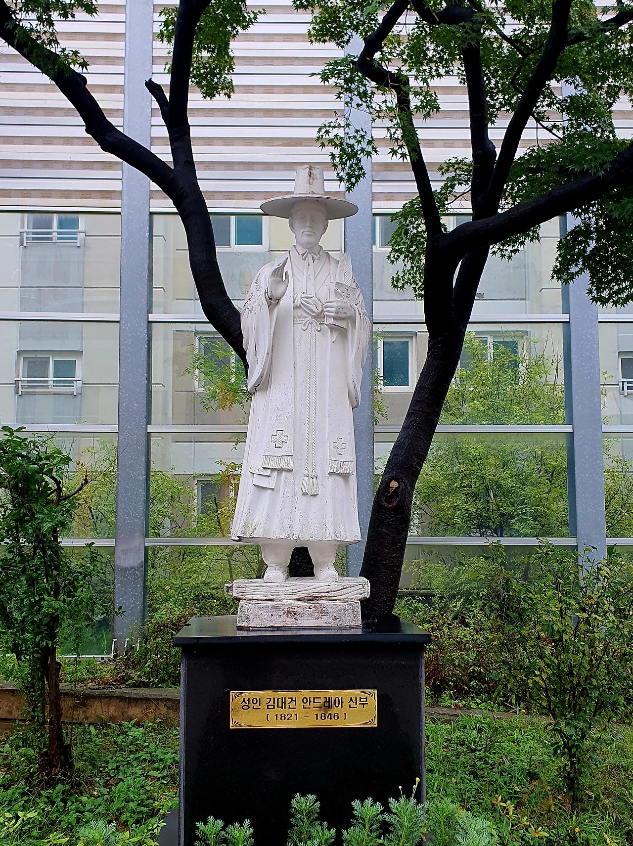 김대건 신부는 16세의 나이에 프랑스 신부를 따라 마카오로 건너가 수학을 하고 사제 서품을 받았습니다. 1845년 그의 나이 24세 때였습니다. 그리고 조선으로 들어와 전교 활동을 하다가 잡혀 25세의 젊은 나이에 순교를 하였습니다. 사제로서 국내에서의 활동 기간은 1년에 불과했지만 박해의 시대에 죽음을 불사하고 입국해 순교한 것에 더해, 우리나라 최초의 신부라는 상징성으로 그는 1984년 교황 요한 바오로 2세에 의해 성인으로 추대되었습니다. 그것엔 그가 사제 서품을 받기 전 중국에서 보낸 8년 세월의 카톨릭 공적도 더해졌을 것입니다. 아래 마지막 사진은 가우디가 건축한 바르셀로나의 사그라다 파밀리아 대성당 스테인드글라스에 새겨진 안드레아 김대건 신부의 이니셜(A. KIM)입니다.
