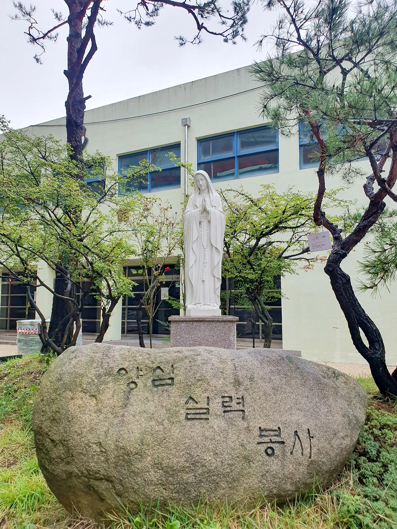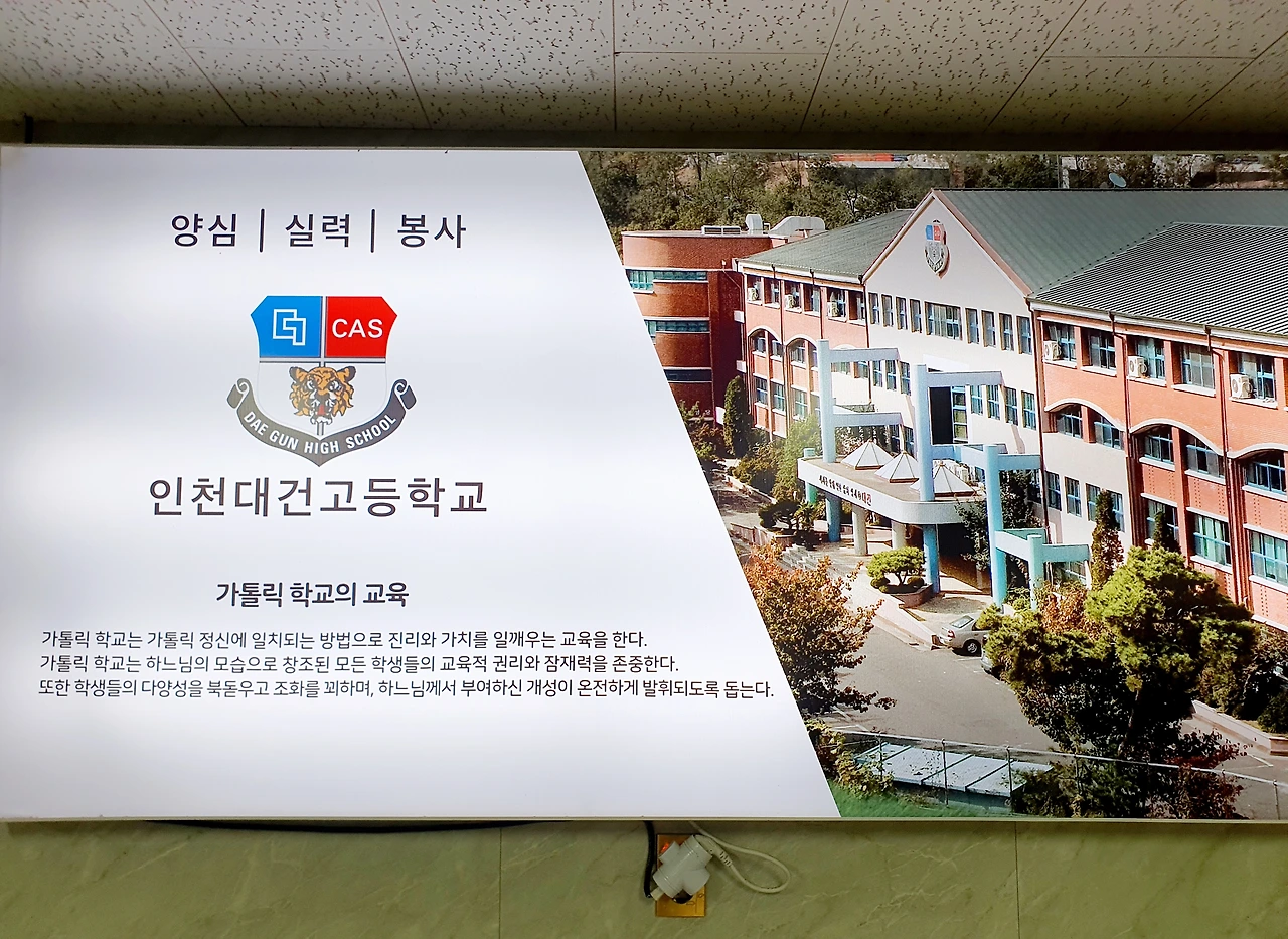 그날 제가 방문한 모교는 위의 세 지역 중 인천에 있는 대건고입니다. 제가 재학 시절엔 동인천역과 하인천역 중간의 구도심에 있었는데 지금은 연수 신도시로 이사를 갔습니다. 맹자 시절엔 학교를 따라 학생이 옮겨 갔지만 지금은 학생이 있는 곳으로 학교가 옮겨 가는 시대에 맞춰 아파트촌으로 간 것입니다. 교내엔 예나 지금이나 카톨릭 건학 이념을 따른 김대건 신부와 성모 마리아의 동상이 서있었습니다. 당연히 학생들에게 종교를 강요하진 않았지만 제가 재학 시절엔 한 달에 한 번씩 운동장이 아닌 교내 성당에서 미사 조회를 드리곤 했습니다. 교장 신부님으로부터 나쁜 사람 되지 말고 공부 열심히 해서 사회에 꼭 필요한 사람이 되라는 강론을 들은 것입니다. 아마 지금도 그럴 것입니다.