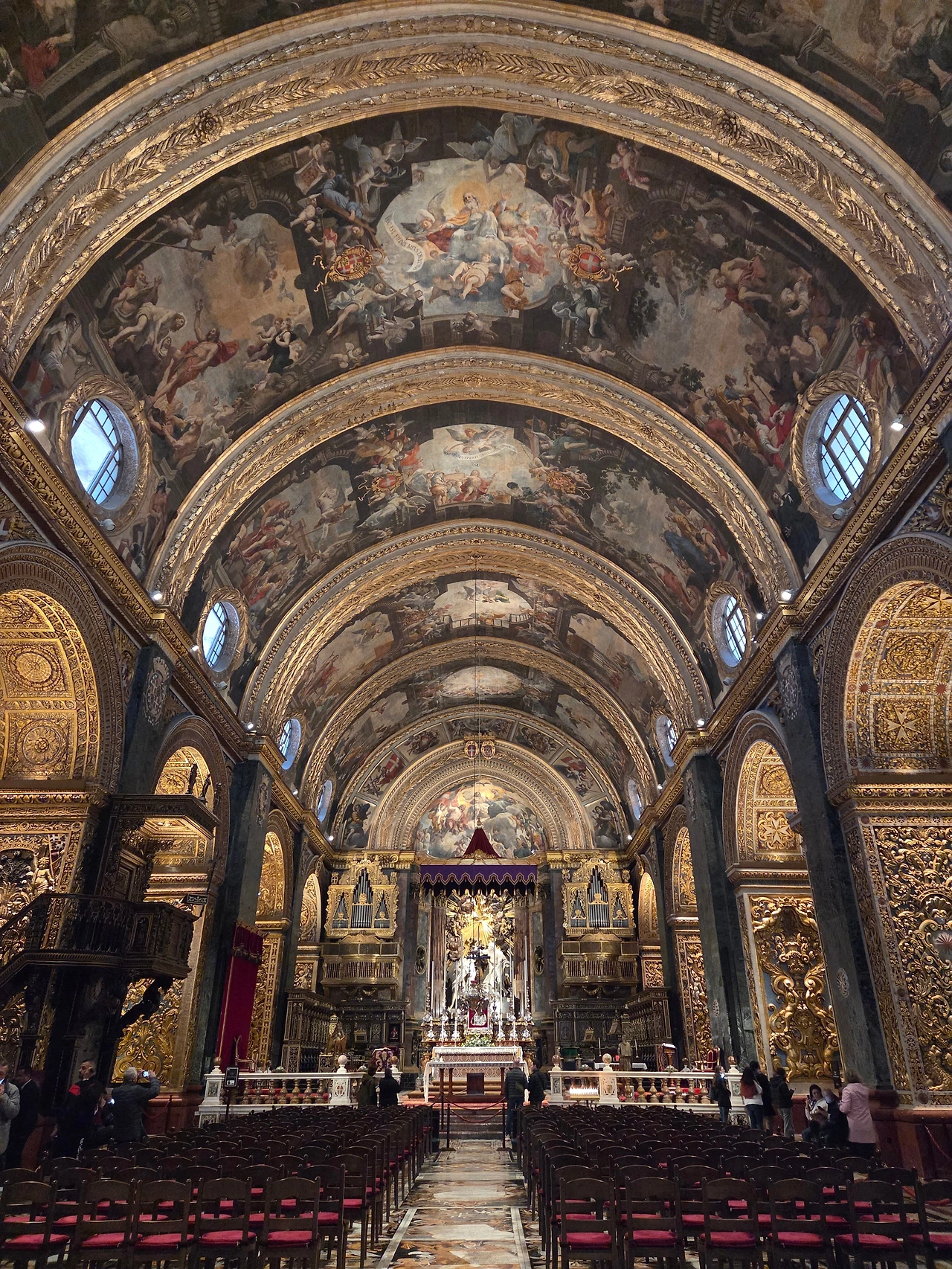 우리나라 강화도 크기의 작은 나라 몰타엔 위의 성 바울 대성당만큼이나 유명한 대성당이 하나 더 있습니다. 몰타기사단이 들어온 후 천도한 발레타에 1577년 건축한 성 요한 대성당입니다. 몰타기사단 최초의 이름인 요한기사단의 이름을 따서 지은 것입니다. 아 그들의 수호성인과도 같은 성 요한은 사도 요한이 아닌 세례 요한입니다. 예수 그리스도보다 6개월 먼저 태어난 6촌형입니다. 그를 기리는 성 요한 대성당은 역시나 바로크풍으로 웅장하고 화려한 성당인데 기사단은 그 성당 안에 많은 그들의 흔적을 남겼습니다. 대표적으로 성당 안 이곳저곳에 기사단의 심벌인 몰타십자가를 새겨 넣었습니다. 그 성당이 몰타기사단의 본당임을 드러내고 있는 것입니다.