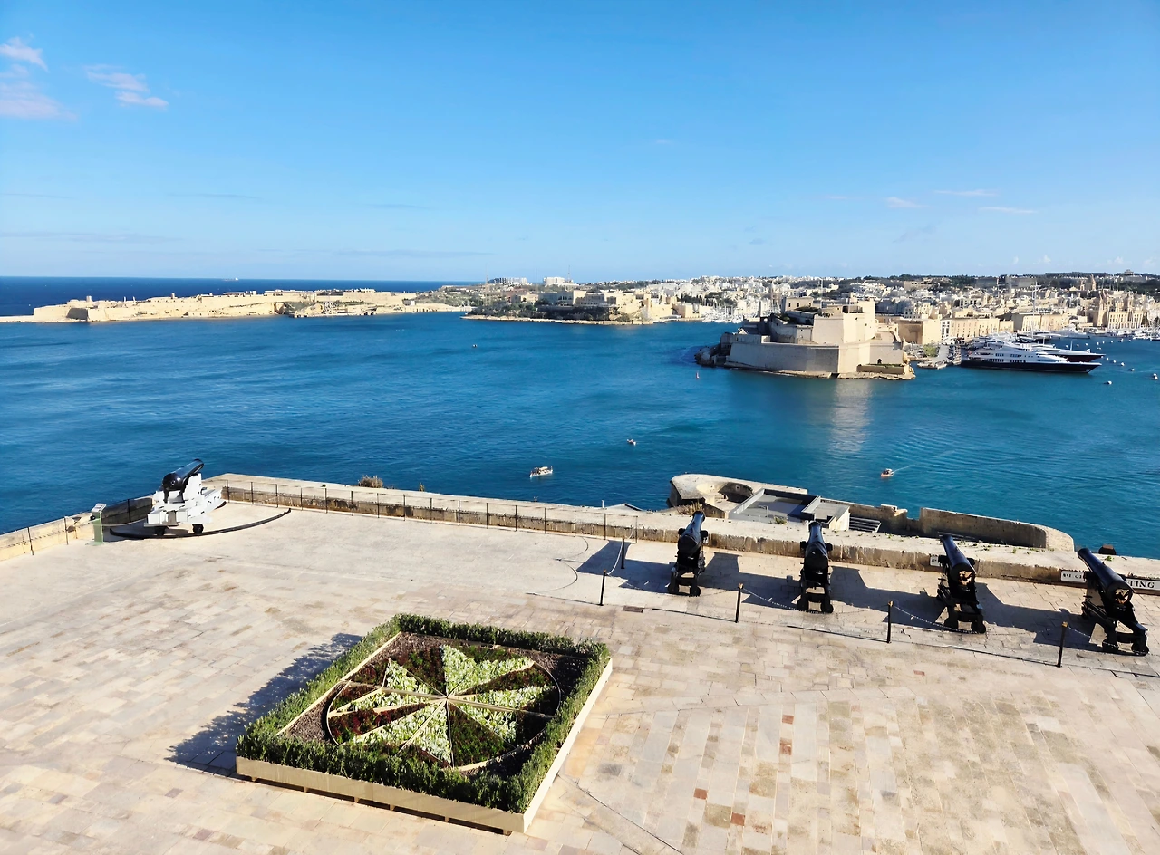시칠리아섬 남단 포잘로에서 몰타섬까지는 뱃길로 채 100km가 되지 않습니다. 그렇게 부드럽게 지중해의 물살을 가르며 2시간 가까이 남으로 향하던 배는 이윽고 몰타공화국의 수도인 발레타에 도착했습니다. 저 멀리 보이는 해안가에 영화에서나 보던 성벽 요새가 나타났습니다. 그리고 한눈에도 그곳이 문명국임을 알 수 있는 고색창연한 도시의 스카이라인이 나타났습니다. 정통 유럽의 이국적인 모습입니다. 농업이 주업이라 어딜 가도 온통 올리브와 오렌지 밭만 보이던 시칠리아에서 출발해서인가 몰타는 마치 사라진 전설의 도시처럼 보였습니다. 더 이상 지중해 남쪽으로는 없을 것만 같은 아프리카 아닌 유럽 도시가 두둥~ 하고 나타난 것입니다. 섬에 가까워지자 그 성벽 위로 빨강 바탕에 리본 모양의 하얀 십자가기가 펄럭이는 것이 보였습니다. 그렇게 몰타기사단의 도시 몰타섬에 도착했습니다.