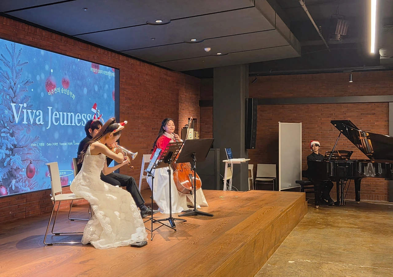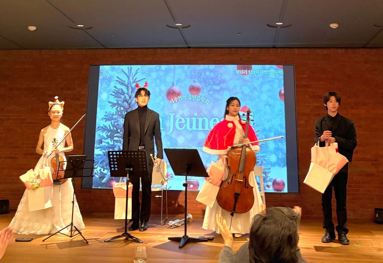크리스마스 시즌입니다. 갈수록 그렇지만 올핸 유독 성탄 분위기를 못 느끼고 있었는데 어제 처음으로 그 분위기를 느꼈습니다. 그것도 아주 무~울씬 느꼈습니다. 그들이 편곡해서 메들리로 들려준 흥겨운 연주를 통해서였습니다. 위에서도 언급했지만 그것 또한 얼마나 요즘 감성으로 잘 편곡했는지 감탄을 하며 들었습니다. 중학생이 한 편곡입니다. 연주자는 바이올린 이현정, 트럼펫 이상욱, 첼로 이지언, 피아노/편곡 김주호였습니다.
