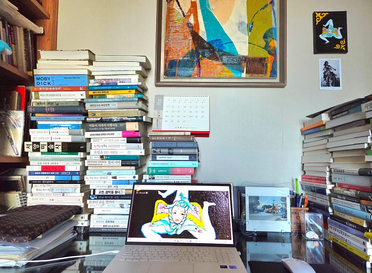 그녀가 들어있는 기념품은 시칠리아에서 어느 상점을 가도 즐비합니다. 하지만 제 눈에 들어오는 그녀는 없었는데 여행 마지막 날 발견의 도시 시라쿠사의 골목에서 마침내 나의 그녀를 발견했습니다. 화가의 아틀리에에서 유화로 조그맣게 그려진 그림 속의 그녀가 눈에 확 들어온 것입니다. 가격도 착해 냉큼 담아왔습니다. 그렇게 우리나라에 온 그녀는 지금 제 방 책상 위에 걸려있습니다. 그녀 아래 도발적인 엽서 사진은 유명한 시칠리안 포토그래퍼였던 화가의 선친이 찍은 사진입니다. 소말리아가 이탈리아의 식민지였던 1930년대에 찍은 전위적인 작품입니다. 이렇게 보너스까지 성공한 from 시칠리아입니다.