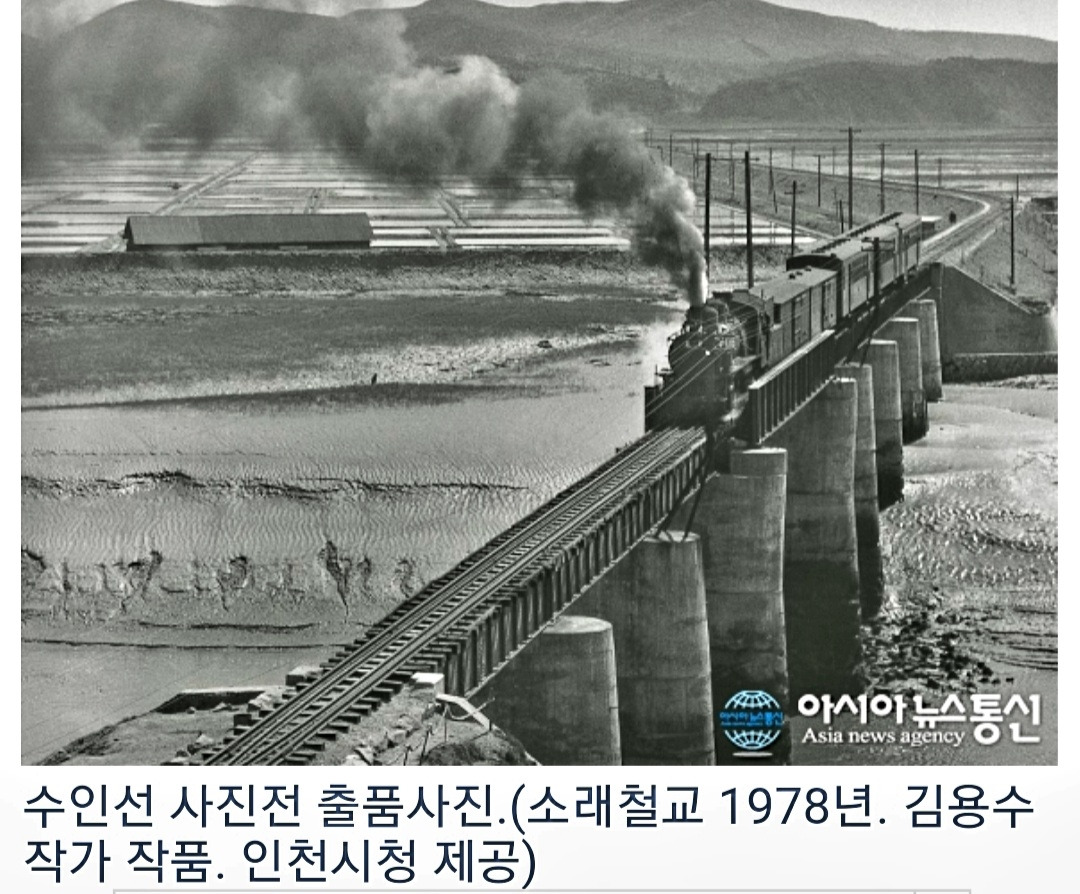 사진 속 수인선의 명물인 소래 다리 위를 달리는 흑백 증기기관차의 촬영일이 1978년도로 되어 있네요. 2020년 현재 우리나라에서 가장 대중적인 교통수단인 전철이 개통된 해가 1975년이니 마치 과거와 현재가 중첩되어 있는 것 같습니다. 경인선, 수인선.. 당시 인천에서 기찻길에 서면 마치 시간이 인버전 되듯 현재와 과거 두 가지를 다 볼 수 있었습니다. 시간을순행하는 열차, 시간을 역행하는 열차..