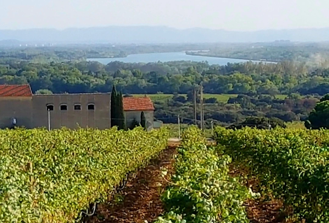 멀리 론강이 내려다 보이는 샤또네프 뒤 파프 와이너리 (Chateau de la Gardine)