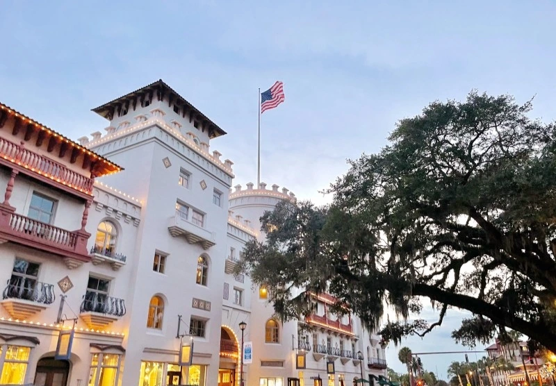성조기가 펄럭이는 옛 스페인 식민지 플로리다의 아름다운 고도 세인트오거스틴