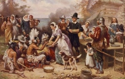 사실 필그림 파더스가 도착 다음 해인 1621년 첫 추수감사절 예배를 드릴 수 있었던 것은 절대적으로 그들을 환대했던 인디언들의 도움이 있었기에 가능했습니다. 인디언 중 유럽을 다녀온 경험이 있는 스콴토와 정착촌 부근 마사소이드 추장 등 많은 인디언들이 정착과 생존에 도움을 주었기에 그런 경작과 추수를 할 수 있었으니까요. 그렇지 않았다면 1620년 첫 해 겨울에 그들 중 절반이 죽은 것처럼 많은 희생자들이 또 나왔을 것입니다. 오늘날 미국민들이 인디언들에게 큰 빚을 지고 있는 많은 이유들 중 최초의 이유라 하겠습니다.