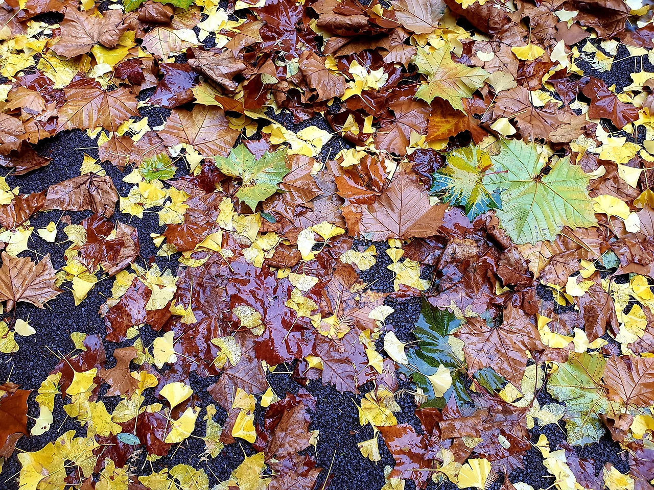 환경미화원님들의 새벽 수고로 늘 깨끗했던 우리집 앞 길이 상전벽해가 아닌 알록달록 낙엽벽해로 바뀌었습니다. 낙엽이 너무 많아 평소의 작업 도구로는 엄두가 안나 그냥 방치한 듯싶습니다. 비도 여전히 오고 있고요. 제겐 그래도 쌓인 낙엽을 바라보며 오늘 하루쯤은 한껏 가을의 정취를 느낄 수 있으니 궂은 날씨임에도 오히려 좋은 듯싶었습니다.