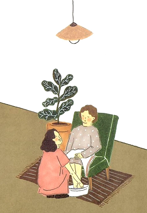 그래서 시집가기 전 엄마에겐 끌려가기만 했던 딸은 이제 친정 엄마와 서로 끌고 당기는 밀당의 사이가 됩니다. 때론 모녀가 툭 터놓고 마주하며 세대를 뛰어넘어 인생의 친구가 되기도 하면서 말입니다. 친구니까 알콩달콩 다툼도 있겠지요. 이렇게 시간이 갈수록 엄마와 딸이라는 경계는 점점 흐릿해지고 같은 여자로서의 동질감이 심화되는 것입니다. 그런 친정엄마의 모습은 그녀의 미래의 모습이기도 합니다. 그녀도 딸을 낳고 엄마로 있다가 그 딸이 시집을 가면 친정엄마가 될 테니까요. 엄마와 친정엄마의 대물림입니다.