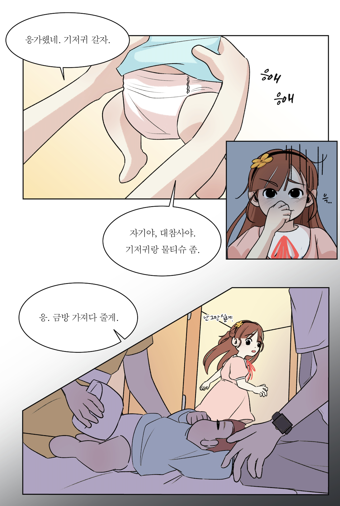“응가 냄새가 좀 나긴 하지만 우리 행복한 네 가족 하자.”