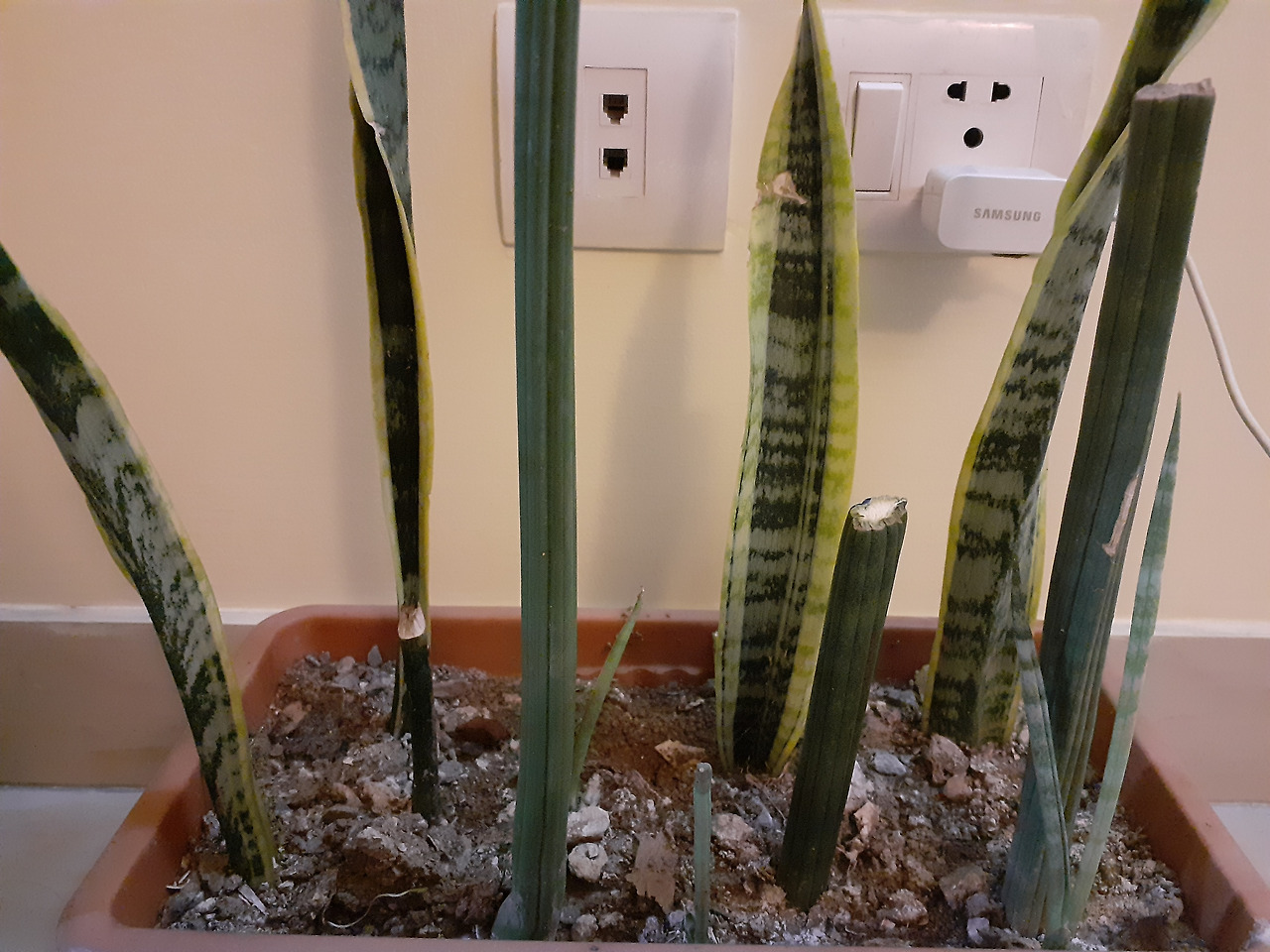 동네 이웃이 준 스투키를 잘라서 키우기. 옆에 자구들이 나있다.