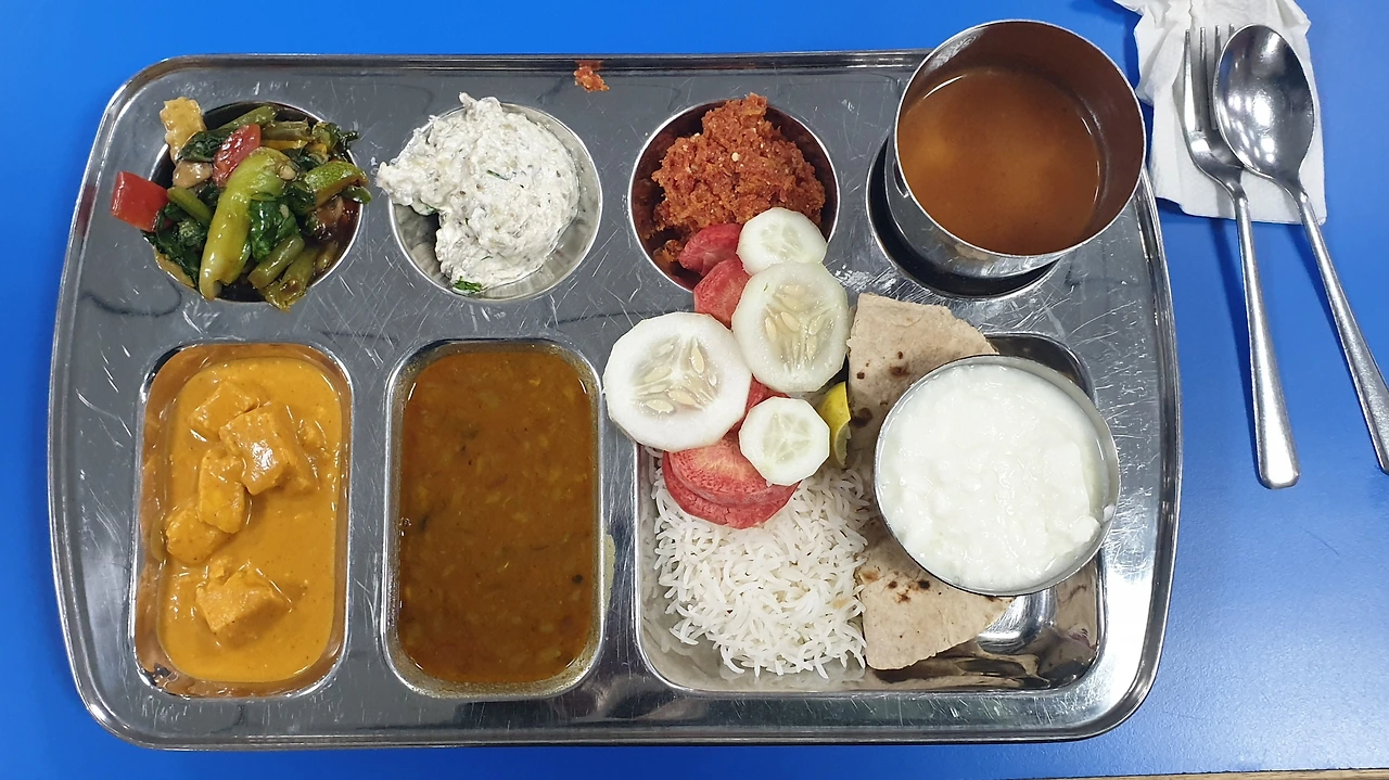 베지테리안 음식인데 남편과 나의 입맛에는 딱 맞았다. 오랜만에 맛있는 인도 베지 음식을 푸짐하게 먹었다.
