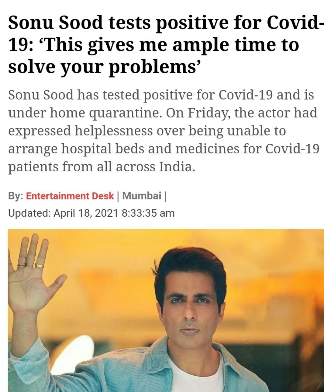 물론 다른 볼리우드 배우들도 코로나에 걸린 경우가 많습니다만 훌륭한 일을 하느라 몸을 사리지 않아서 걸렸을 소누 수드의 조속한 회복을 기원합니다.